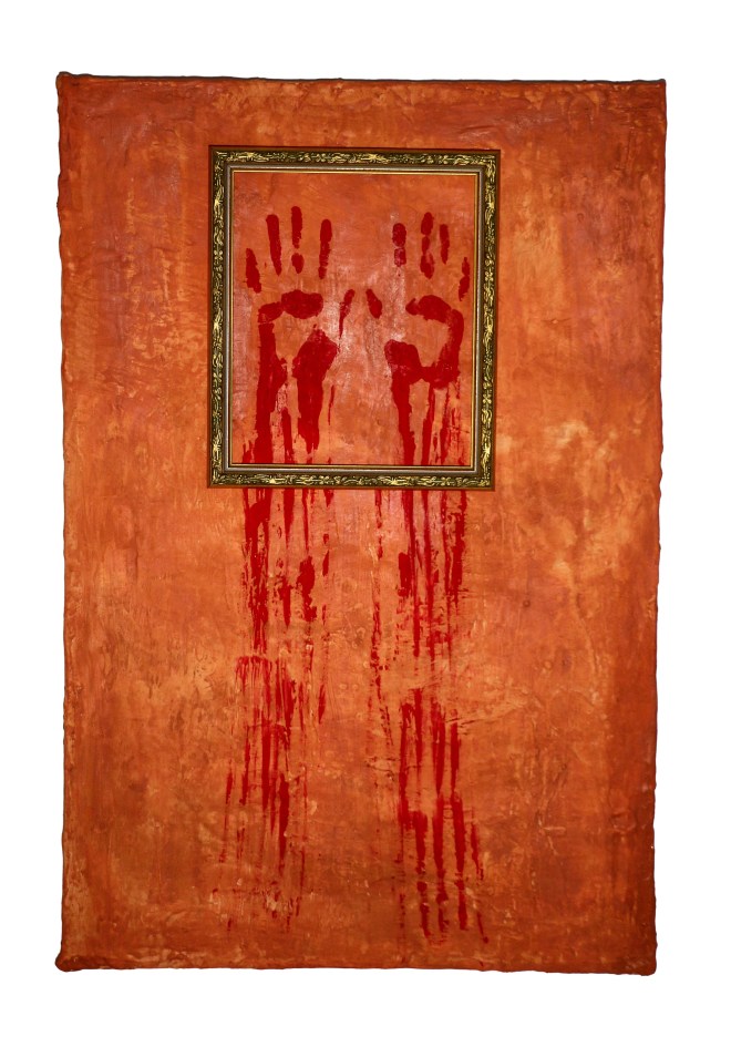 Blood on Your Hands, 2020; Plaster, Red Sindoor and Wood frame